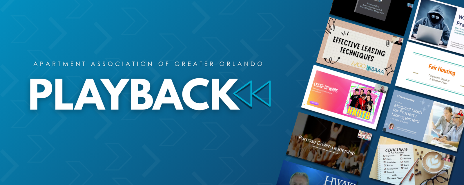 Stay informed, sharpen your skills, and revisit the sessions that matter most. The Playback Library gives you instant, on-demand access to 100+ recorded webinars across every corner of the multifamily industry. Whether you’re leveling up a new hire, strengthening a seasoned team, or refreshing your own knowledge, Playback helps you grow on your schedule.
